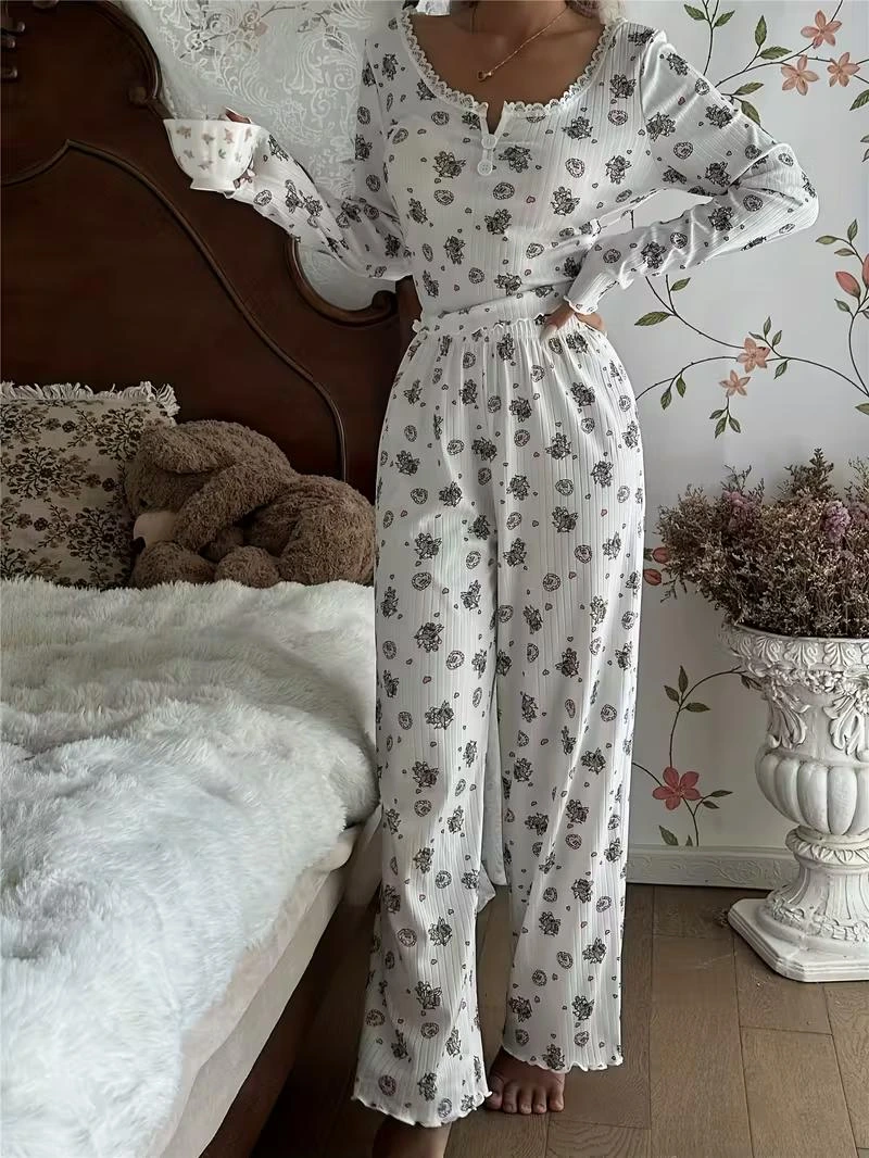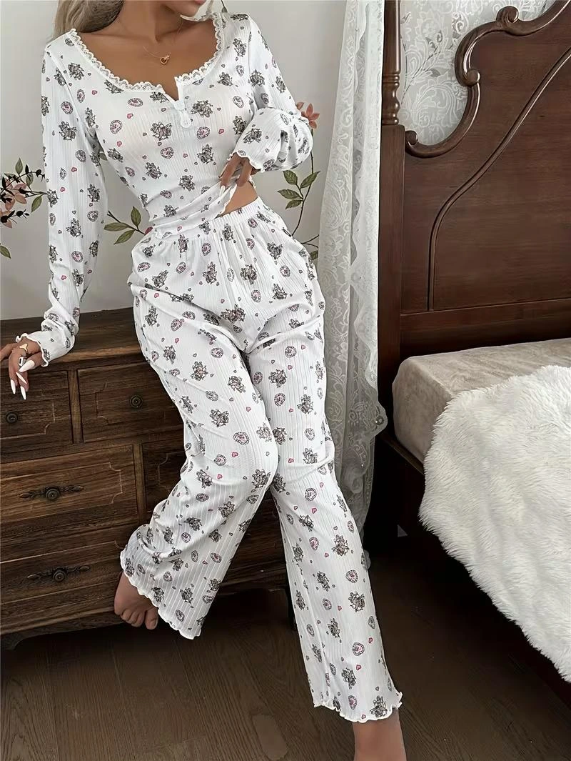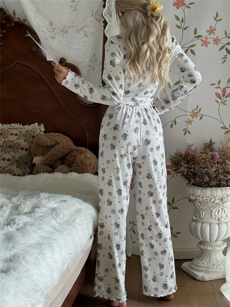 Ayı Melek Baskılı Sonbahar Kış Uzun Kollu Uzun Pijama Takımı, yumuşak dokulu kumaşı ve rahat kalıbıyla ev giyiminde konfor sunar. Sevimli ayı melek baskısı ile dikkat çeken bu model, toptan satış ve dropshipping için uygundur ve e-ticaret satıcıları için kolay stok yönetimi sağlayan ideal bir üründür.