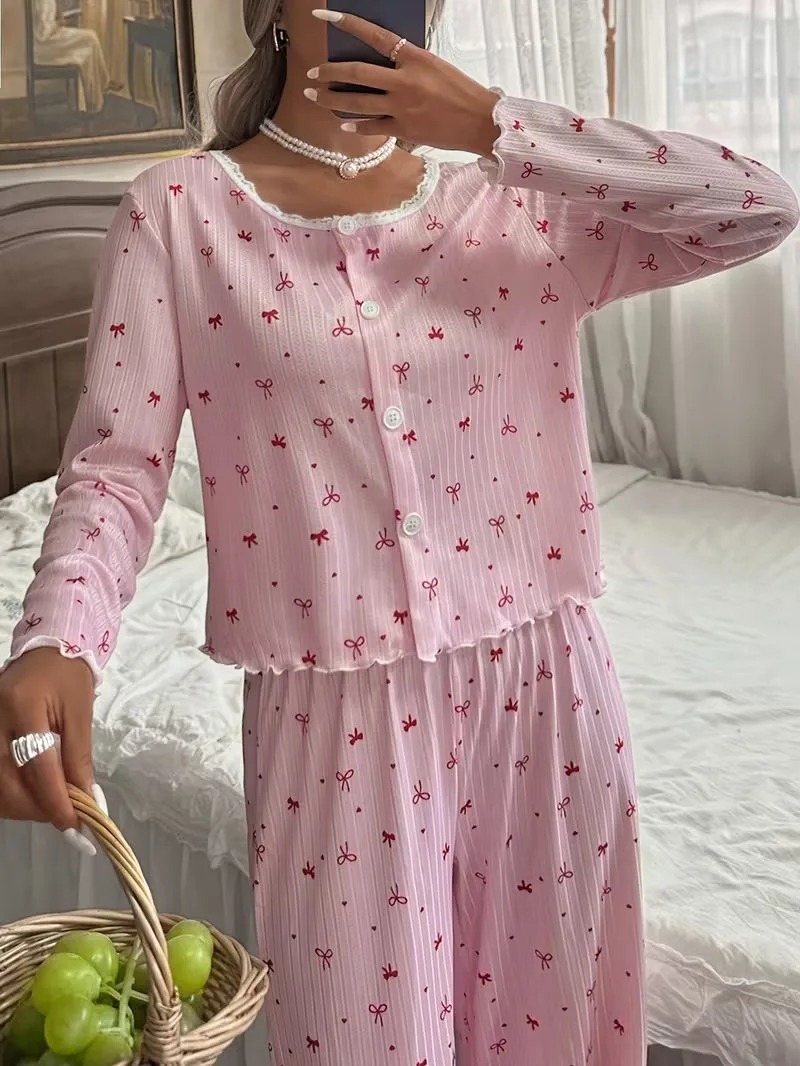 Pembe Kelebek Desenli Bisiklet Yaka Pijama Takımı, yumuşak dokulu kumaşı ve rahat kesimiyle ev giyiminde konfor sunar. Şık kelebek deseni ile dikkat çeken bu model, toptan satış ve dropshipping için uygundur ve e-ticaret satıcıları için pratik bir satış ürünüdür.