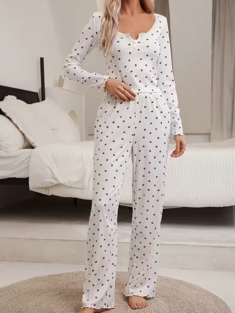 Uzun Kollu Uzun Paçalı Kurdele Desenli Pijama Takımı, yumuşak ve rahat kumaşıyla ev giyiminde konfor sunar. Şık kurdele deseniyle dikkat çeken bu model, toptan satış ve dropshipping için uygun, e-ticaret satıcıları için ideal bir üründür. Stok yönetimi kolay, müşteriler tarafından tercih edilen rahat bir pijama takımıdır.